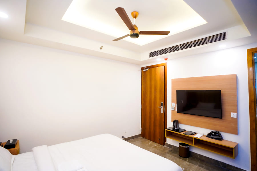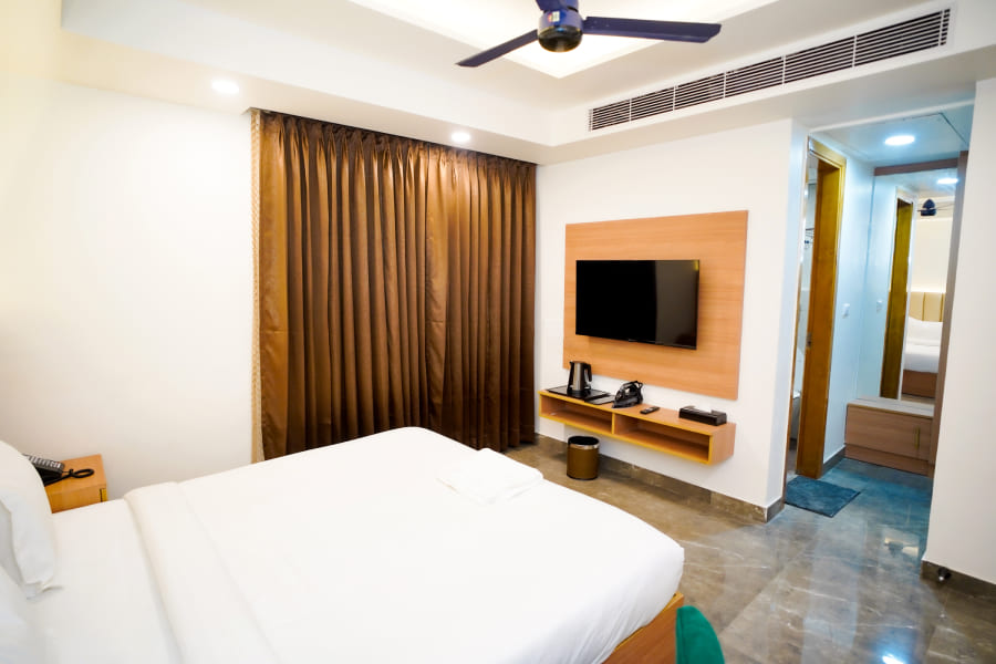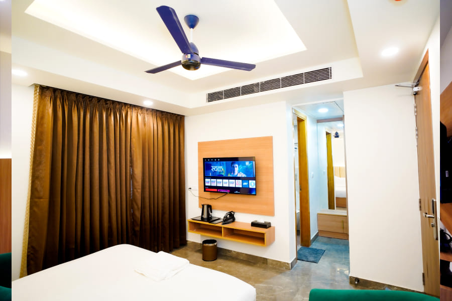 The Deluxe Room at Royal Raven Hotel & Banquet offers a harmonious blend of style, comfort, and convenience. Elegantly furnished with modern décor, plush bedding, and soft lighting, it provides a calm and inviting atmosphere for guests. Each room is equipped with essential amenities such as high-speed Wi-Fi, a flat-screen TV, air conditioning, and a spacious work desk, making it ideal for both business and leisure stays.