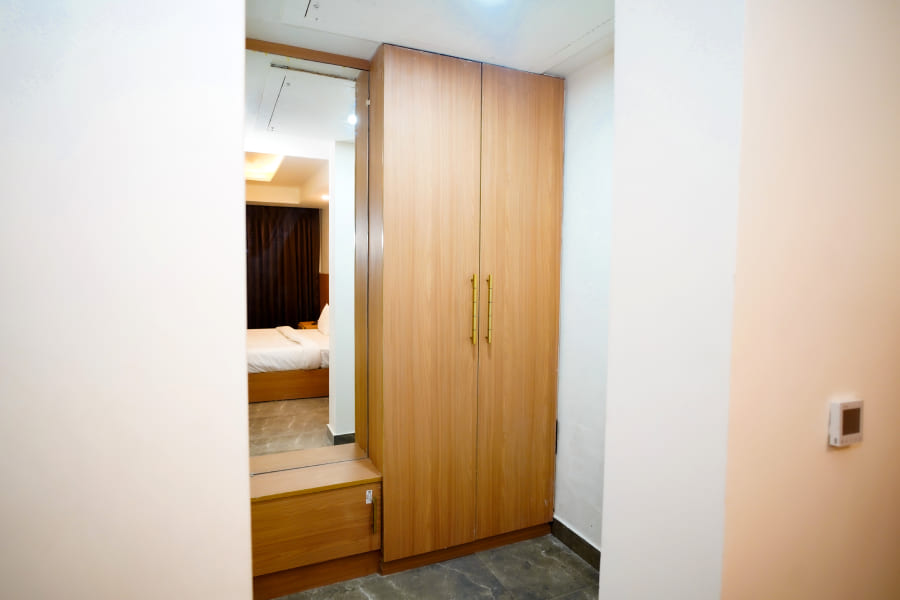The Suite Room at Royal Raven Hotel & Banquet redefines luxury with its spacious design and elegant ambiance. Thoughtfully crafted for guests who appreciate comfort and sophistication, the suite features a beautifully furnished bedroom, a stylish living area, and modern amenities like high-speed Wi-Fi, a flat-screen TV, air conditioning, and a work desk. Every element is designed to offer a premium stay experience that blends functionality with elegance.